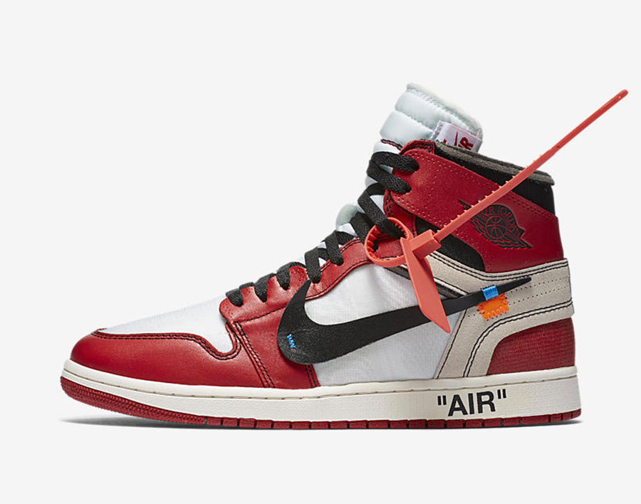 Issue de la collection Nike The Ten x Off White imaginée par Virgil Abloh pour Nike et Jordan Brand, la Off-White x Air Jordan 1 est sortie à l’automne 2017.