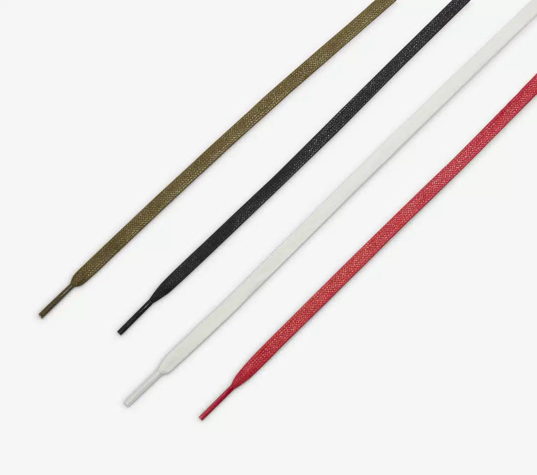 Après avoir présenté le coloris Sail Black, La Flame enchaîne avec une seconde exclusivité féminine. La silhouette de Peter Moore affiche une tige en daim noir, ainsi que des superpositions en cuir blanc cassé. Les lacets cirés et le swoosh inversé, quant à eux, affichent une teinte vert olive tandis que les brandings de la languette et du talon optent pour du rouge. De nombreuses illustrations sur les insoles, de même qu’une semelle vintage et une outsole olive, peaufinent le design.