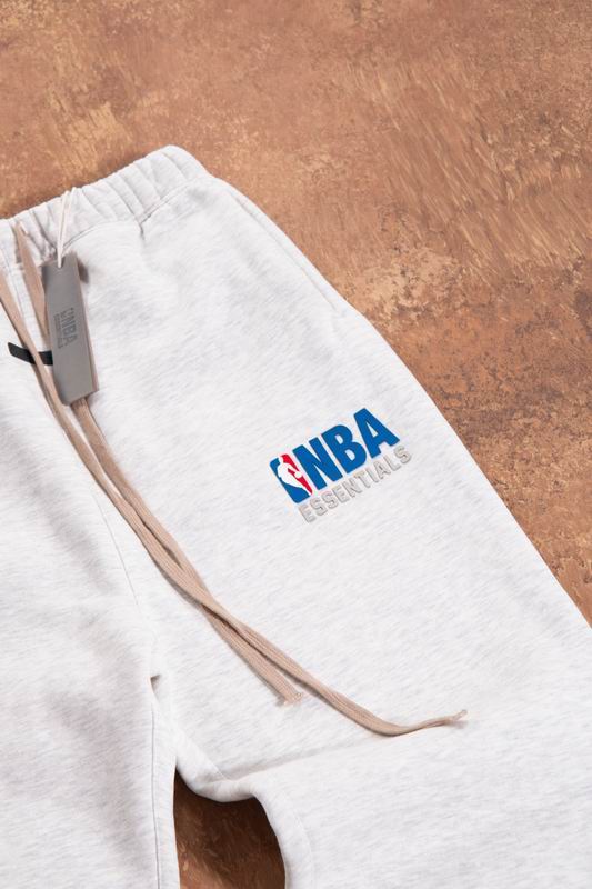 Le pantalon de jogging Essentials NBA en gris allie confort et style urbain. Confectionné dans un mélange doux de coton (80%) et polyester (20%) avec une texture polaire intérieure, il offre une sensation chaude et agréable. Sa taille élastique avec lien de resserrage garantit un maintien ajusté, tandis que les chevilles évasées donnent une silhouette moderne et décontractée. Il est équipé de deux poches latérales passepoilées pour plus de praticité. Les logos Essentials en caoutchouc et imprimé sur la cuisse apportent une touche distinctive à ce basique revisité.
